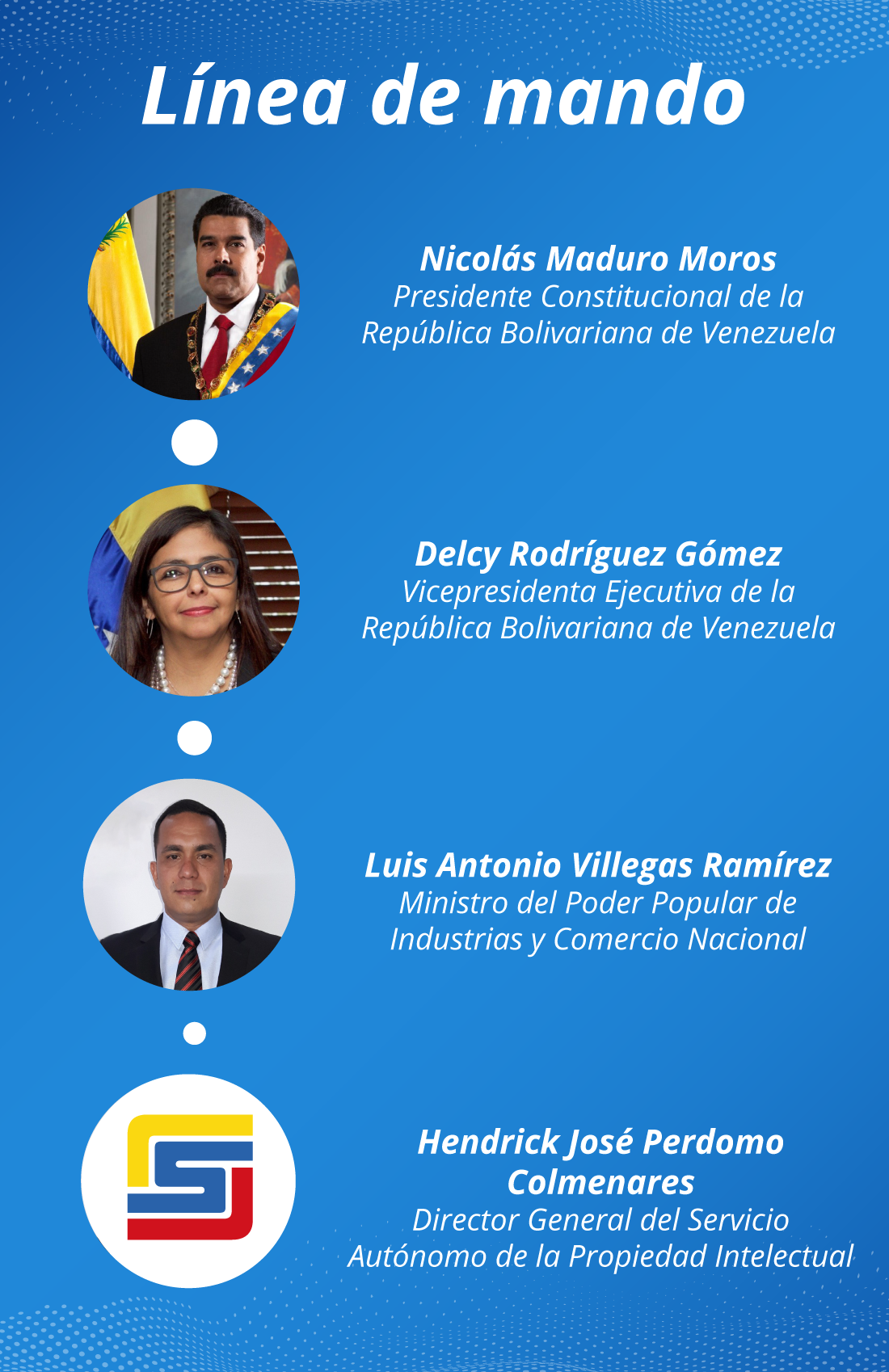 Dirección General de la Propiedad intelectual: encargada de velar por el funcionamiento administrativo y técnico del Servicio Autónomo de la Propiedad Intelectual, así como, coordinar y definir las estrategias, políticas y planes para el desarrollo de la Propiedad Intelectual en Venezuela.